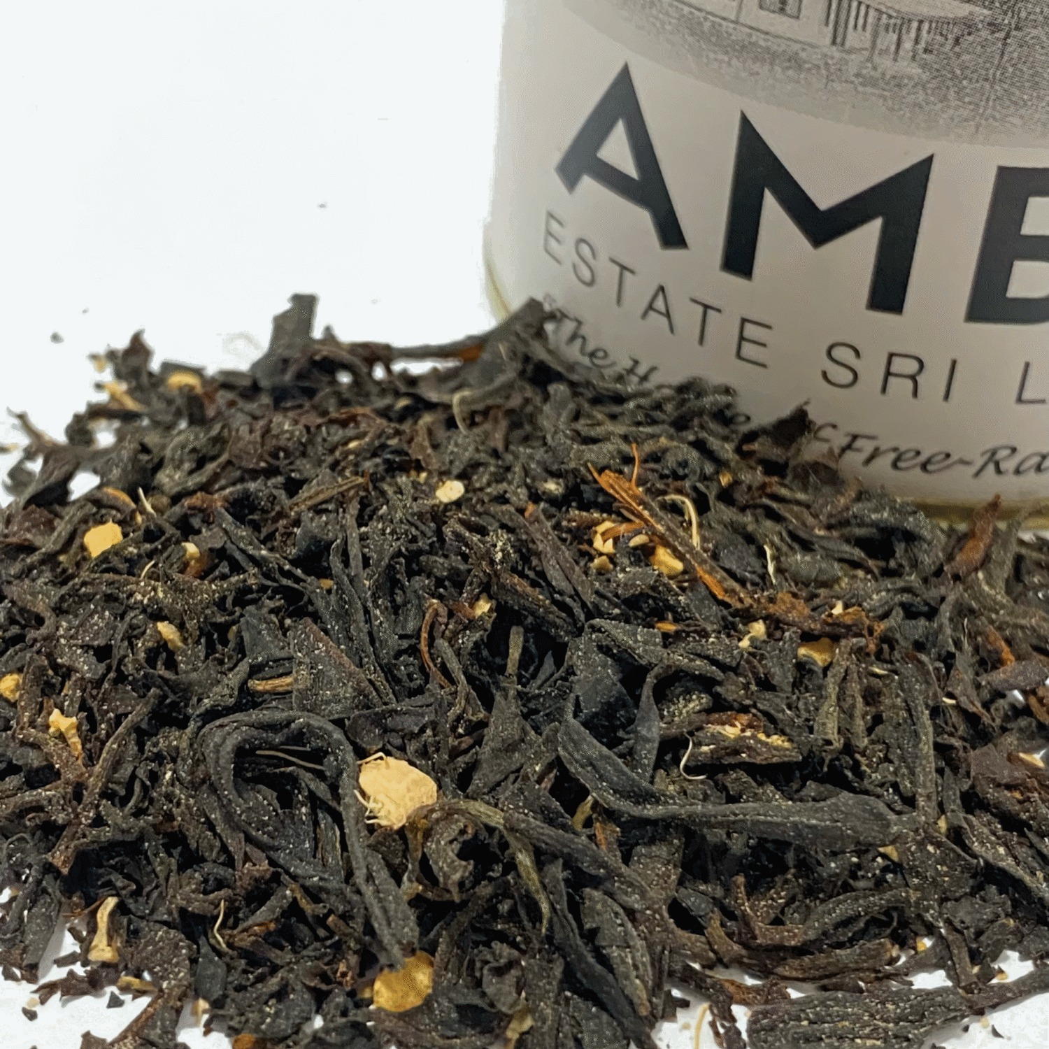 Hand-crafted Uva-style black “breakfast” tea with Amba’s own organic ginger. Packed in a foil bag