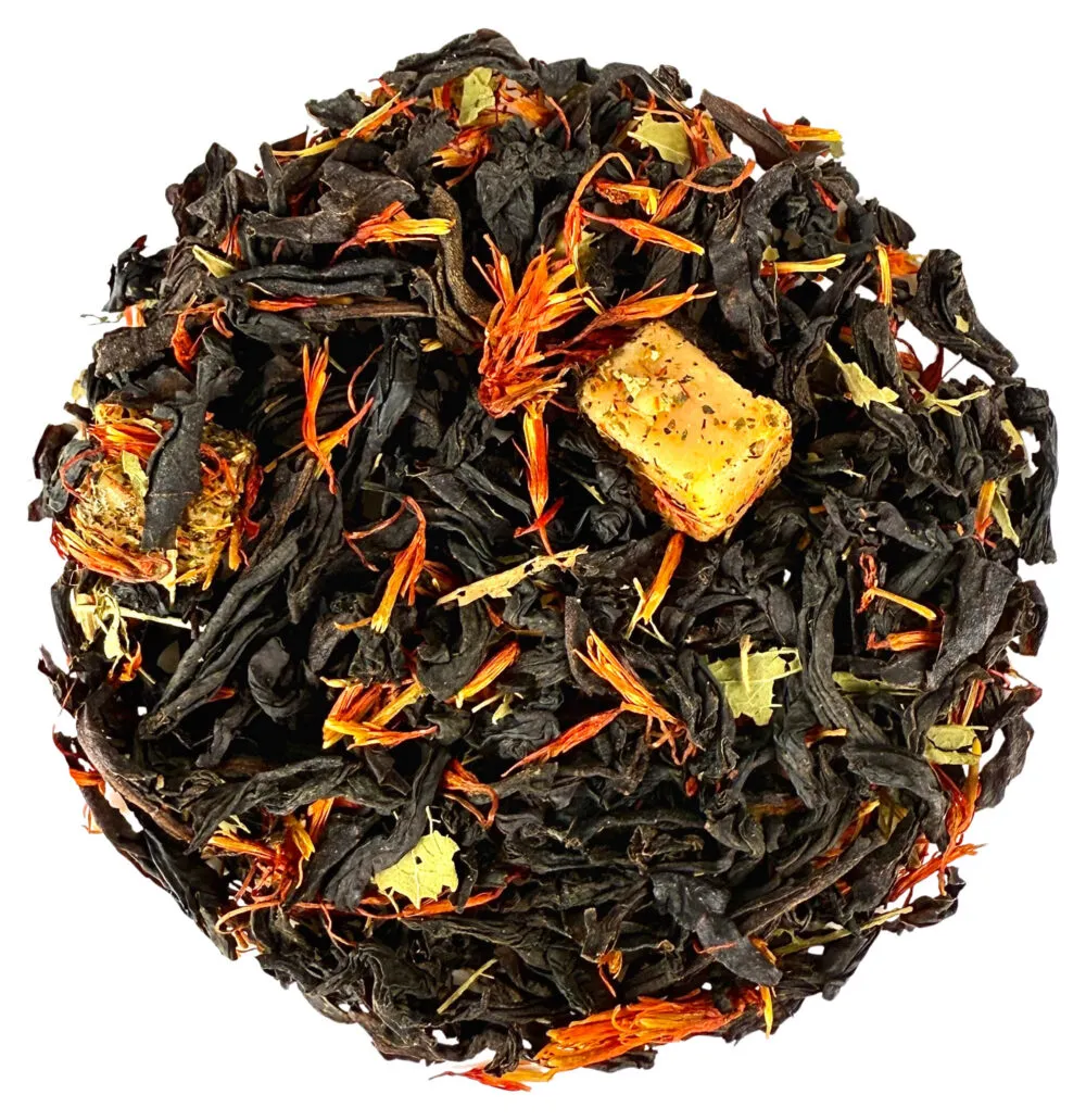 Ingredients: Black tea (95%), caramel pieces (3%), safflower petals (1%), natural caramel flavouring (1%). May contain traces of nuts.
