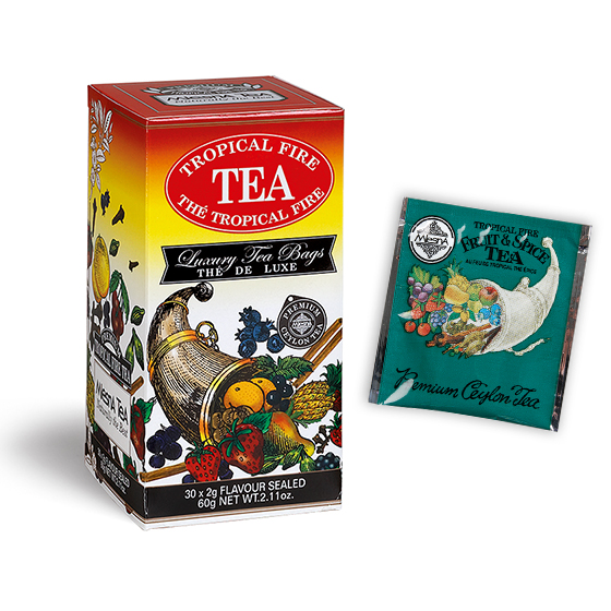 Tropical Fire – Luxury foil envelope tea bags dispenser cartons 30 tea bags – Flavored Black Teas